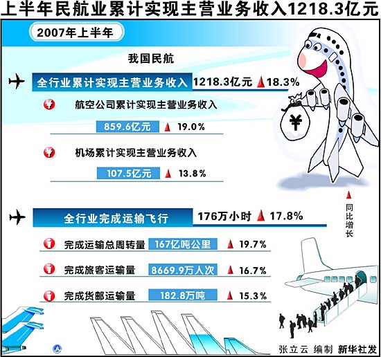 上半年民航業(yè)實現(xiàn)主營業(yè)務收入1218.3億元