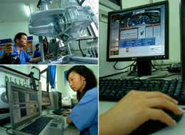 一汽技術(shù)中心發(fā)動機(jī)部主任工程師崔曉娟告訴記者:“我們的科研不是找金子,而是要找到找金子的方法! 一汽的綜合研發(fā)注重方法研究,建立并完善了科學(xué)的開發(fā)流程。承擔(dān)一汽集團(tuán)商用車、乘用車和主要總成開發(fā)重?fù)?dān)的一汽技術(shù)中心,近幾年通過引進(jìn)技術(shù)與聯(lián)合設(shè)計(jì)項(xiàng)目,研發(fā)人員不僅學(xué)到了先進(jìn)的產(chǎn)品技術(shù),而且還建立了符合國際汽車質(zhì)量標(biāo)準(zhǔn)的產(chǎn)品研發(fā)流程和質(zhì)量保證體系。 正是發(fā)現(xiàn)了找金子的方法,在基礎(chǔ)研究領(lǐng)域,一汽通過聯(lián)合開發(fā)、產(chǎn)學(xué)研合作開發(fā)等多種方式,“十五”期間完成了以“解放牌混合動力城市客車研究開發(fā)”“紅旗混合動力轎車的研發(fā)”“支持汽車電子的嵌入式軟件平臺”為代表的國家“863”項(xiàng)目。其中電動汽車是國家“863”計(jì)劃中特別設(shè)立的重大專項(xiàng),通過承擔(dān)這項(xiàng)任務(wù)使一汽混合動力汽車技術(shù)在國內(nèi)處于領(lǐng)先地位。 正是發(fā)現(xiàn)了找金子的方法,在商用車產(chǎn)品開發(fā)中,一汽形成了商用車全系列自主開發(fā)能力,包括整車操縱穩(wěn)定性、動力性、經(jīng)濟(jì)性、可靠性、主被動安全性、增壓中冷、排氣制動、四氣門技術(shù)、電控技術(shù)、高壓共軌噴射技術(shù)、燃燒技術(shù)、預(yù)緊式安全帶、空氣動力學(xué)優(yōu)化、空氣懸浮式懸置、雙前軸平衡懸架、操縱安全控制策略、盤式制動器、ABS系統(tǒng)、驅(qū)動防滑系統(tǒng)、底盤系統(tǒng)綜合控制等40多項(xiàng)關(guān)鍵核心技術(shù)。 正是發(fā)現(xiàn)了找金子的方法,在乘用車開發(fā)中,一汽技術(shù)中心基本形成了中級和中級以下自主開發(fā)能力,擁有了30多項(xiàng)關(guān)鍵技術(shù)。已具備中高檔轎車整車匹配和轎車車身的開發(fā)及完全自主開發(fā)經(jīng)濟(jì)型轎車的能力。