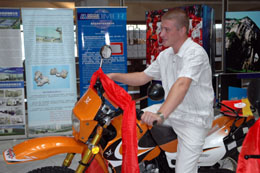 據(jù)有關(guān)部門提供的數(shù)據(jù)顯示,我國目前摩托車企業(yè)有155家,摩托車品牌有400個,其中自主品牌384個占總數(shù)的96%,2006年摩托車產(chǎn)銷量突破2000萬輛,占世界總產(chǎn)量一半以上,產(chǎn)業(yè)發(fā)展速度達(dá)到近年來最好水。圖為在俄羅斯舉辦的“中國年·重慶周”活動,俄羅斯觀眾對重慶的摩托車非常感興趣。 新華社記者:劉軼芳
