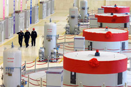 西藏“十五”期間重點能源建設(shè)項目之一的拉薩河直孔水電站日前投產(chǎn)發(fā)電。該電站總投資13.37億元,裝機容量10萬千瓦,總庫容2.25億立方米,年均發(fā)電量4.07億千瓦時。直孔水電站的建成將在藏中電網(wǎng)發(fā)揮骨干電站作用。圖為三名技術(shù)人員檢查拉薩河直孔水電站四臺機組的運行情況。