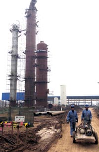在四川達(dá)州市中石化齊魯分公司建設(shè)基地,幾名工人正在施工。四川達(dá)州天然氣資源豐富,目前已探明儲(chǔ)量5500億立方米,是四川盆地天然氣的富集區(qū)、全國(guó)三大氣田之一。