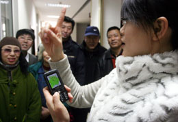 日前,沈陽(yáng)市殘疾人服務(wù)熱線為聾人開(kāi)通求助、咨詢等手機(jī)短信服務(wù)。聾人用戶只需向服務(wù)中心發(fā)送指定短信號(hào)碼,就會(huì)得到所需要的法律、低保等方面的信息幫助。圖為沈陽(yáng)殘疾人服務(wù)熱線的工作人員為聾人講解短信服務(wù)相關(guān)知識(shí)。 |