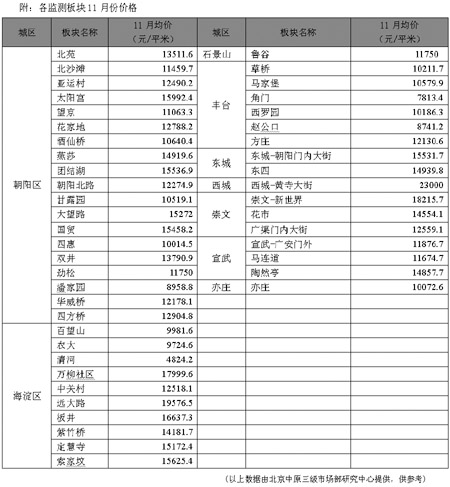 據(jù)北京中原三級市場部研究中心對監(jiān)測樓盤統(tǒng)計,2007年11月北京中高檔二手房成交價格為12973.9元/平方米,11月二手房買賣領(lǐng)先指數(shù)為215點,環(huán)比10月上漲3.77%。而10月環(huán)比9月價格增幅為3.8%?梢,11月中高檔二手房價格增幅同10月份價格增幅相比有所趨緩。但從11月成交量上來看,環(huán)比10月卻有所下降,降幅達(dá)9%左右。