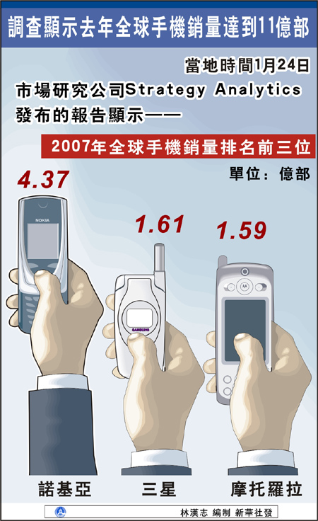 調(diào)查顯示去年全球手機銷量達到11億部[圖]