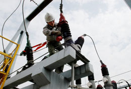 自3月份以來,安徽滁州供電公司對涉農供電設施進行全面檢修,加大農網投入,保障農村地區(qū)春耕用電。圖為滁州供電公司員工保養(yǎng)供電設施。