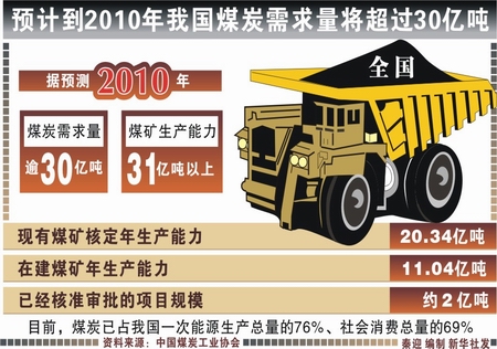 預(yù)計(jì)到2010年我國煤炭需求量將超過30億噸