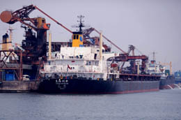 中國最大的輸煤港口群河北秦皇島港、黃驊港、唐山港年煤炭吞吐量超過3億噸,裝船量占全國69%。根據(jù)日前通過的《河北省沿海港口布局規(guī)劃》,這種“一煤獨大”格局將被打破,在未來十年內(nèi)三大港口將在繼續(xù)承擔“北煤南運”重要通道的基礎(chǔ)上,向原油、鐵礦石、液體化工品、糧食、集裝箱等多領(lǐng)域拓展。圖為一艘輪船停泊在秦皇島港碼頭裝貨。