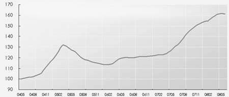 2008年6月,中原(上海)領(lǐng)先指數(shù)為161點(diǎn),樣本成交均價(jià)為18469元/平方米,環(huán)比下跌0.45個(gè)百分點(diǎn),同時(shí)二手房成交量也繼續(xù)下滑,環(huán)比上月下降了14個(gè)百分點(diǎn)。總體來說,6月上海二手房市場(chǎng)呈現(xiàn)量價(jià)齊跌的態(tài)勢(shì)。