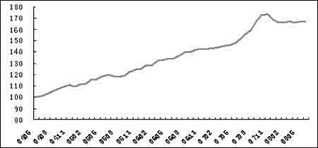 2008年6月,中原(廣州)領(lǐng)先指數(shù)為167.3,環(huán)比下降0.1個百分點;成交量比上月的小高潮有明顯回落,整體成交價小幅下調(diào)。從半年的趨勢來看,廣州二手房價格走勢以平穩(wěn)為主。