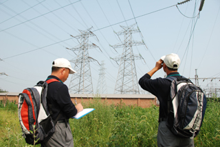 福建電力400名援京保電職工上崗履職。他們將實行“三班兩倒”,每天對變電站、重要線路進行24小時巡視保護。圖為保電人員在京郊巡視檢查線路。