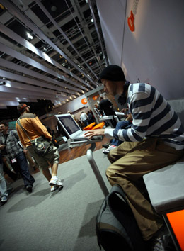 參觀者在德國(guó)柏林國(guó)際消費(fèi)電子展上試用電子產(chǎn)品。 |