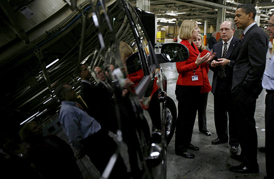 10月13日,通用汽車公司宣布,由于市場(chǎng)萎縮,通用汽車將在今年年底之前關(guān)閉一家位于美國(guó)威斯康星州的工廠,該廠成立于1919年,主要生產(chǎn)大型SUV。圖為美國(guó)總統(tǒng)候選人奧巴馬2008年2月13日在該工廠參觀時(shí)的資料照片。新華社/路透