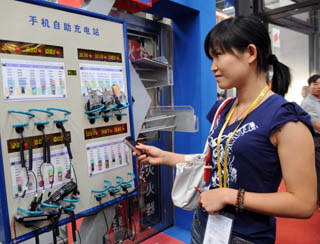 手機自助充電站為參觀者提供方便[圖]