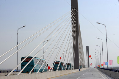 11月26日,我國首座四塔單索斜拉橋山東濟陽黃河公路大橋建成通車。大橋總投資4.2億元,全長1165米,主橋最大跨度216米。大橋建成后,成為溝通京滬高速、青銀高速等多條國家公路主干線的重要樞紐性工程。