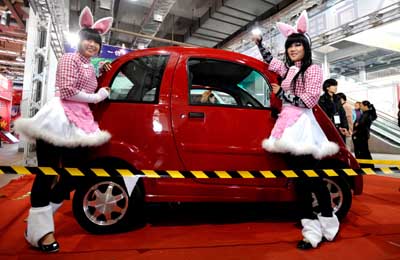 由中國(guó)節(jié)能協(xié)會(huì)、湖南省經(jīng)濟(jì)委員會(huì)、長(zhǎng)沙市人民政府主辦的“2008中國(guó)(長(zhǎng)沙)節(jié)能科技產(chǎn)品交易博覽會(huì)”日前在長(zhǎng)沙紅星國(guó)際會(huì)展中心舉行。圖為一家企業(yè)展出環(huán)保電動(dòng)汽車。本報(bào)記者:李尕