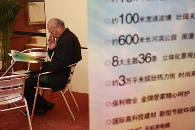 近日,第24屆中國上海房地產(chǎn)展示交易會在上海展覽中心開幕,近百家開發(fā)商攜150多個(gè)樓盤前來參展,這是房產(chǎn)新政出臺后滬上首次大型房展。盡管展會上開發(fā)商推出了各種各樣的購房優(yōu)惠,但大部分消費(fèi)者持理性的觀展態(tài)度,性價(jià)比高和保值性好的樓盤備受關(guān)注。圖為一位市民正在一處促銷樓盤的展位前查閱詳細(xì)資料。 |