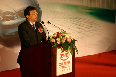 比亞迪公司董事長王傳福在全球首款比亞迪雙模電動(dòng)車上市儀式上致辭。 | 12月15日,由我國汽車制造企業(yè)自主研發(fā)、生產(chǎn)的世界第一款雙模電動(dòng)車——比亞迪F3DM在深圳宣告上市。這對(duì)正在遭受百年不遇“經(jīng)濟(jì)寒流”的全球汽車業(yè)來說,無疑是一聲給人帶來信心和希望的春雷。一直在奮力追趕的中國汽車制造業(yè)也因此被定格在了全球新能源汽車領(lǐng)跑者位次。