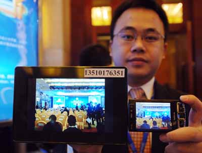 日前,第三屆移動(dòng)夢(mèng)網(wǎng)重慶論壇在重慶舉行,論壇以“新起點(diǎn),新價(jià)值”為主題,來自國內(nèi)外頂尖企業(yè)家和技術(shù)專家,圍繞新通信、移動(dòng)互聯(lián)網(wǎng)及新媒體的發(fā)展現(xiàn)狀及未來趨勢(shì),展開深入研究和討論。 據(jù)了解,自2000年中國移動(dòng)推出“移動(dòng)夢(mèng)網(wǎng)創(chuàng)業(yè)計(jì)劃”以來,重慶移動(dòng)已分別在2002年和2004年舉辦兩屆移動(dòng)夢(mèng)網(wǎng)重慶論壇。圖為一名移動(dòng)公司的技術(shù)人員正在展示可以通過電信新技術(shù)接收手機(jī)照片的電子相框。 |