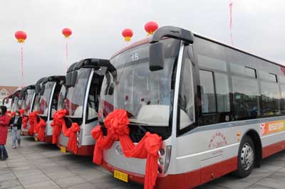 12月18日,由一汽集團(tuán)為大連提供的12臺(tái)混合動(dòng)力大客車即將投入公交運(yùn)行,這種大客車兼有油和電力兩種動(dòng)力來(lái)源。大連市18日舉行儀式,宣布啟動(dòng)電動(dòng)汽車示范項(xiàng)目。
