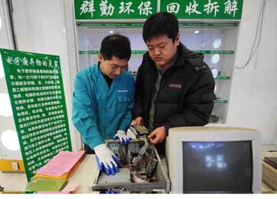 日前,電子廢棄物專業(yè)拆解企業(yè)——哈爾濱群勤環(huán)保技術(shù)服務(wù)有限公司,進(jìn)駐哈爾濱市高校和科技企業(yè)集中區(qū)的大型電子產(chǎn)品商場(chǎng)“百腦匯”。業(yè)內(nèi)人士認(rèn)為,這種以“正規(guī)軍”駐店收購(gòu)形式向電子產(chǎn)品流通和使用人群普及電子垃圾的環(huán)保處置理念,必將受到人們的歡迎。