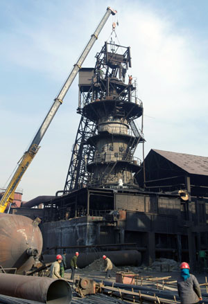 為貫徹落實國家節(jié)能減排方針,淘汰落后產(chǎn)能,改善大氣環(huán)境,河北邢臺開始拆除兩座220立方米高爐,此次拆除可有效改善當?shù)丨h(huán)境質(zhì)量。圖為12月23日邢臺市龍海鋼鐵集團的一座高爐設施被拆除。