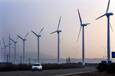 山東省風(fēng)能資源豐富,且經(jīng)濟(jì)發(fā)達(dá),對(duì)能源需求量也較大。風(fēng)電項(xiàng)因此成為山東省新能源領(lǐng)域利用外資的新亮點(diǎn)。據(jù)統(tǒng)計(jì),近年來(lái),山東共引進(jìn)風(fēng)電外資項(xiàng)目12個(gè),總裝機(jī)容量521MW,總投資7.1億美元,合同外資1.2億美元,實(shí)際使用外資6900萬(wàn)美元。圖為記者于12月28日在山東榮成市濱海大道拍攝的“風(fēng)車陣”。 |