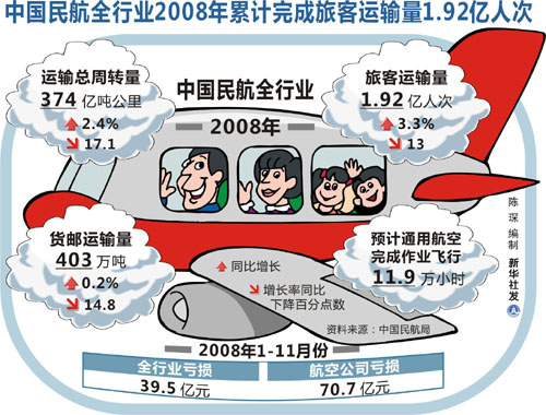 民航業(yè)2008年完成旅客運(yùn)輸量1.92億人次