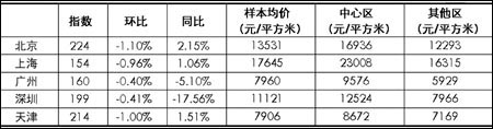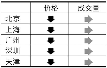 根據(jù)中原領(lǐng)先指數(shù)系統(tǒng)顯示,2008年12月五大主要城市二手住宅價格繼續(xù)下跌,但跌幅有所減小。廣州深圳僅出現(xiàn)0.4%左右的下跌幅度;北京、上海和天津指數(shù)仍保持1%左右的幅度繼續(xù)下跌。