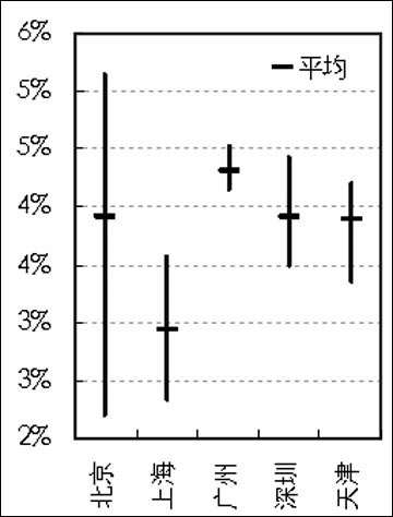 上海租金回報(bào)率在五城市中最低,在2008年3月時,這一指標(biāo)滑落至3%以下,目前僅2.93%。