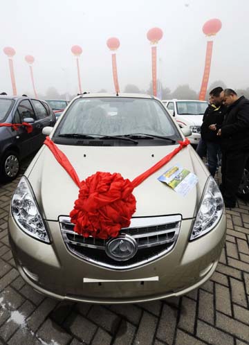 1月9日,湖南省在長沙縣啟動了“汽車下鄉(xiāng)”試點活動,當?shù)剞r民購買汽車,除了廠家讓利優(yōu)惠外,政府還將給予補貼和貸款貼息。圖為消費者在“汽車下鄉(xiāng)”活動現(xiàn)場選購長豐獵豹汽車。本報記者:龍弘濤