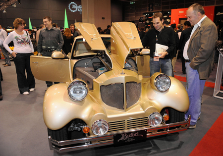 參觀者在車展上觀看一輛Bufori La Joya汽車。
