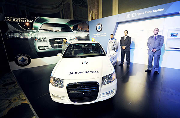 2月25日,上海華普汽車有限公司在埃及首都開羅舉行新車發(fā)布儀式,旗下的Primera、Romeo、Escala三款車型正式投放埃及市場。圖為幾名工作人員在展示即將投放埃及市場的上海華普Primera汽車。