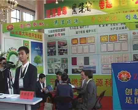 圖為具有自主知識產(chǎn)權(quán)的高科技專利成果——“奧里油改性柴油機(jī)替代燃料”展區(qū)一角。
