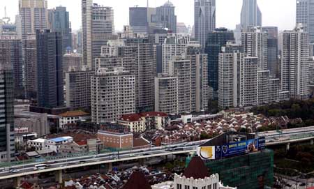 這是上海市中心的商品樓群(3月29日攝)。 市場機構(gòu)佑威·樓市通系統(tǒng)提供的數(shù)據(jù)顯示,上周(3月23日至29日)上海商品住宅成交量和成交均價雙雙大幅上漲,其中商品住宅成交量連續(xù)3周呈現(xiàn)10%以上的漲幅。