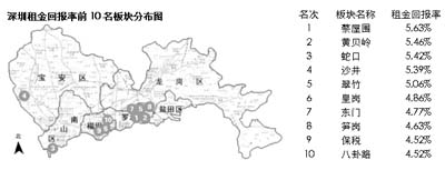 成熟理性的房地產(chǎn)市場,租金回報率的高低是投資決策的重要參考。高租金回報率不僅意味著豐厚的租金收入,同時也預(yù)示著良好的升值潛力。 目前深圳全市租金回報率僅3.88%,仍處于較低的水平。但隨著價格的不斷下跌,部分中心區(qū)域目前已有不錯的租金回報率水平,投資價值正在逐步顯現(xiàn)。 根據(jù)中原統(tǒng)計,深圳租金回報率最高的10個板塊中,蔡屋圍板塊最高,為5.63%;八卦路板塊最低,也有4.52%。在區(qū)位分布上,工作生活條件較為成熟和便利的羅湖和福田區(qū),在前10名中共占據(jù)8席,其中羅湖區(qū)5個,福田區(qū)3個,另有南山區(qū)和鹽田區(qū)各一個。
