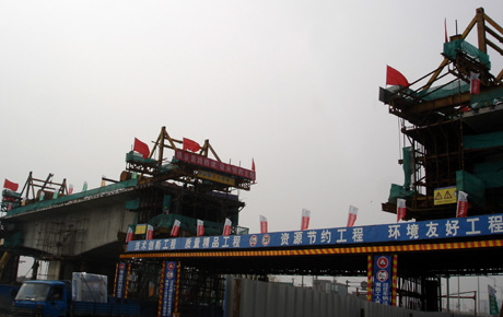 這是4月7日在江蘇昆山拍攝的滬寧城際鐵路施工現場。 截至目前,滬寧城際鐵路江蘇昆山段的架梁工程完成近半,滬寧城際鐵路雄姿初現。滬寧城際鐵路全線長300公里,2008年7月1日開工建設,建成后將采取公交化運營,全線設置21個車站,通車后最小發(fā)車間隔可達每3分鐘一班。 (新華社發(fā))