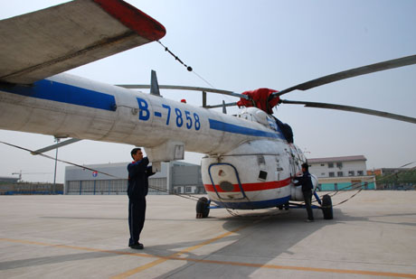 近日,天津翔宇航空維修工程有限公司作為中國(guó)民航界的第一家直升機(jī)大修公司,在位于天津?yàn)I海國(guó)際機(jī)場(chǎng)的新基地順利落成并取得大修證。以前國(guó)內(nèi)直升機(jī)主要是送到國(guó)外進(jìn)行維修,該基地的建立將大大降低國(guó)內(nèi)航空企業(yè)直升機(jī)的維修成本。圖為技術(shù)人員對(duì)經(jīng)過(guò)維修的直升機(jī)進(jìn)行檢測(cè)。