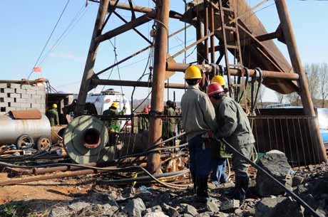 4月14日11時,河北省遵化市西三里鄉(xiāng)胡莊子村一非法鐵礦發(fā)生透水,6人被困井下。接報后,唐山市以及遵化市立即啟動應(yīng)急預(yù)案,迅速組織專業(yè)隊伍趕赴現(xiàn)場,搶救被困人員。據(jù)初步調(diào)查,該礦屬非法礦井。礦主及相關(guān)人員已被公安部門控制,接受訊問。事故原因正在調(diào)查中。圖為救援人員正在井口抽水。