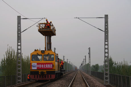 日前,中鐵電氣化局集團(tuán)一公司的施工人員在河北省境內(nèi)深州至邢家村區(qū)段成功架設(shè)起了京九鐵路電氣化改造工程的第一條接觸網(wǎng)導(dǎo)線,標(biāo)志著京九鐵路電氣化改造工程進(jìn)入掛網(wǎng)架線階段。該工程將于今年年底竣工。