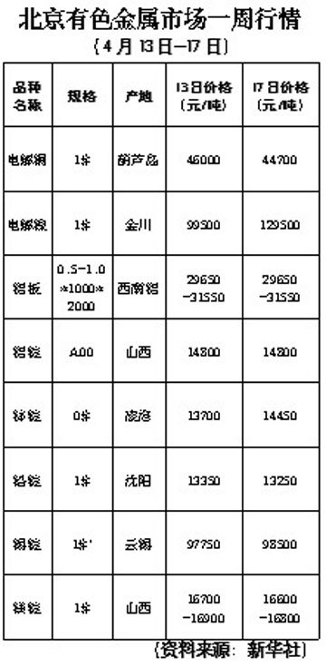 北京有色金屬市場一周行情[04.06-04.10]]