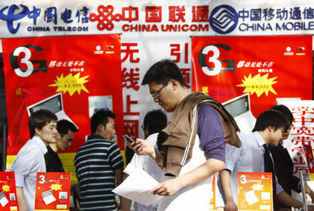 隨著世界電信日的臨近,中國移動、中國電信和中國聯(lián)通三大運營商逐步投入商用的3G業(yè)務受到消費者的高度關注,3G時代三大運營商的市場份額競爭也將愈演愈烈。新華社記者:裴鑫