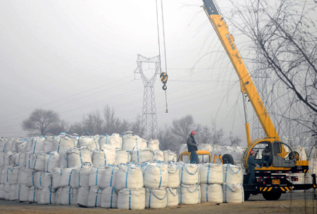 包鋼集團(tuán)工人在裝載稀土下游原料。 |