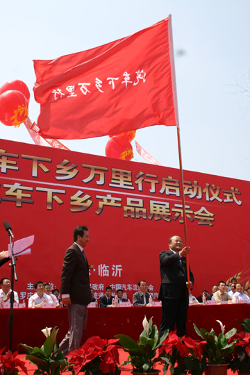 山東臨沂市市長(zhǎng)張少軍接過(guò)了“汽車(chē)下鄉(xiāng)萬(wàn)里行”活動(dòng)的旗幟。 |