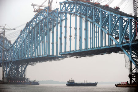 京滬高速鐵路南京大勝關(guān)長江大橋南岸合建段簡支梁施工已經(jīng)全部完成,目前距離合龍只剩下最后的24米。南京大勝關(guān)長江大橋工程全長9.273公里,是京滬高速鐵路的控制性工程,也是滬漢蓉鐵路通道及南京鐵路樞紐的重要組成部分。