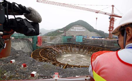 6月4日,媒體記者采訪浙江省臺州市中核集團三門核電項目建設(shè)工地。 三門核電廠址位于浙江三門縣,三面環(huán)海,地理位置優(yōu)越。三門核電工程采用國外第三代壓水堆核電技術(shù)AP1000建造,規(guī)劃建設(shè)6臺125萬千瓦的核電機組,總裝機容量為750萬千瓦。