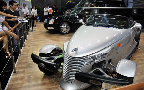 6月10日,在深圳舉行的深港澳國際汽車博覽會上,一款造型奇特的汽車吸引了觀眾的目光。 當日,2009年深圳-香港-澳門國際汽車博覽會在深圳會展中心開幕。據(jù)悉,這是深港澳三地首次聯(lián)合舉辦的汽車展,吸引了眾多國內(nèi)外知名汽車品牌參展。