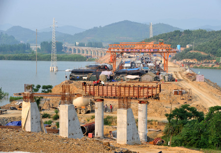 6月15日,彭湖高速公路控制工程河灣大橋進(jìn)入橋梁鋪架階段。 江西彭澤至湖口高速公路一期工程主線全長(zhǎng)52.106公里,投資估算16.1億元,自2008年10月開工以來(lái),已完成投資4.4億元,路基完成工作量近90%。作為國(guó)家高速公路濟(jì)南至廣州和杭州至瑞麗公路間的加密高速公路,公路建成后,將把江西九江與安徽安慶、銅陵及江蘇南京有機(jī)地連成一體,對(duì)于發(fā)揮長(zhǎng)江港口城市的樞紐運(yùn)輸將起到重要作用。
