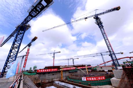 福建福清核電站2號機組核島反應(yīng)堆廠房施工工地(6月17日攝)。 6月17日,福建福清核電站2號機組比原計劃提前3個月開工建設(shè)。福建福清核電工程是國家批準(zhǔn)建設(shè)的重大能源工程之一,該工程規(guī)劃連續(xù)建設(shè)6臺百萬千瓦級二代改進型壓水堆核電機組,1號機組已于2008年11月21日開工建設(shè)。1、2號機組將分別于2013年11月和2014年9月建成投產(chǎn)。整個工程6臺機組計劃于2018年1月全面建成投產(chǎn)。