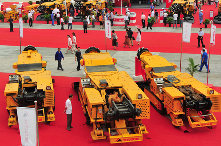 6月18日,寧夏能源及電力產(chǎn)業(yè)博覽會(huì)在銀川國(guó)際會(huì)展中心開(kāi)幕,來(lái)自國(guó)內(nèi)外的360多家裝備制造企業(yè)參展。這是展會(huì)上展出的大型采掘設(shè)備。