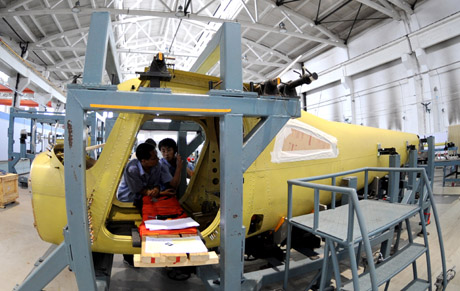 這是7月13日拍攝的組裝中的L162活塞式輕型運動飛機。 中航工業(yè)沈陽飛機工業(yè)(集團)有限公司(簡稱沈飛公司)和美國賽斯納飛機公司合作生產(chǎn)的L162活塞式輕型運動飛機將于年內(nèi)在沈陽實現(xiàn)首飛。據(jù)該公司介紹,目前項目正處于飛機大部件組裝階段。 這款L162輕型運動飛機主要用于飛行培訓、私人娛樂飛行。美方承擔該飛機的設計,沈飛公司負責飛機零組件制造、裝配和試飛。